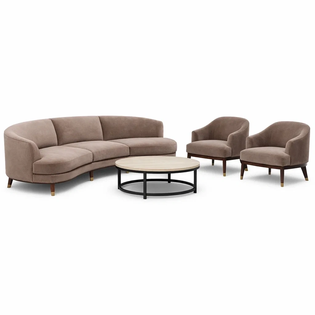 Set di divani Curvo in Microfibra con Tavolino Rotondo in Metallo e Legno Marrone