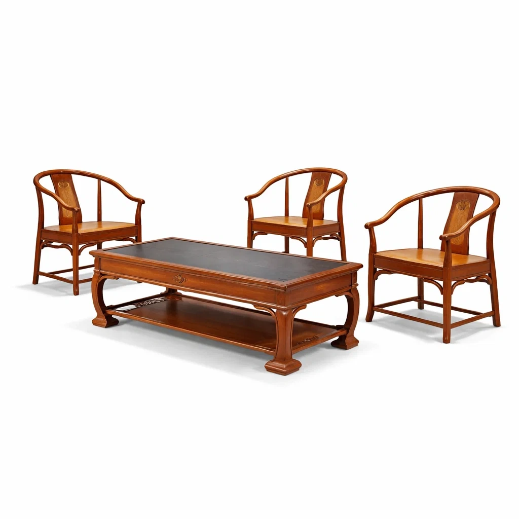 Set da conversazione con tavolino da tè in legno e ardesia e 3 sedie