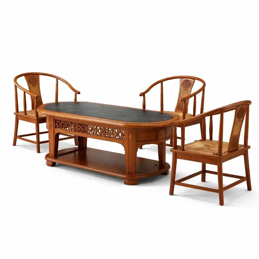 Set da conversazione con tavolino da tè in legno e ardesia e 3 sedie