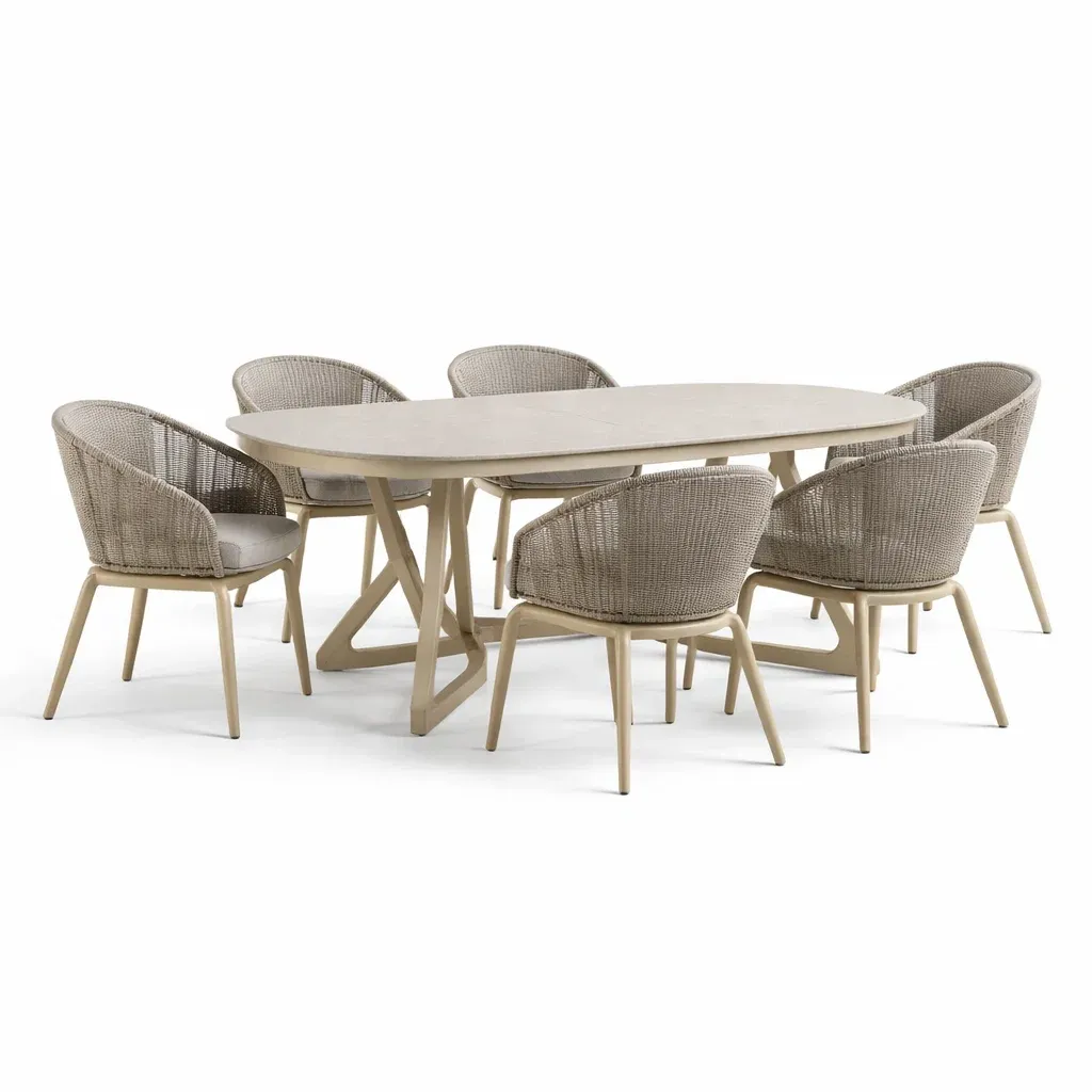 Set tavolo e sedie ovale in Alluminio con Sedie in Corda