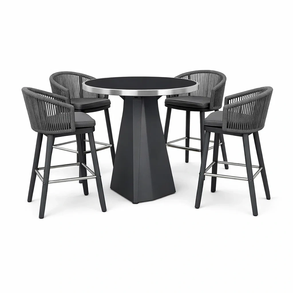 Set tavolo e sgabelli da bar rotondo con Quattro Sgabelli con Telaio in Alluminio